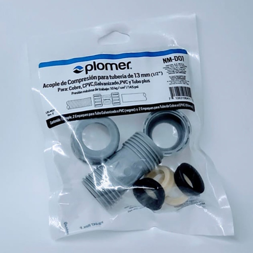 Acople de compresión para tubería 1/2, une Cpvc, cobre, hidráulico y galvanizado modelo NM-D01, Marca Coflex.