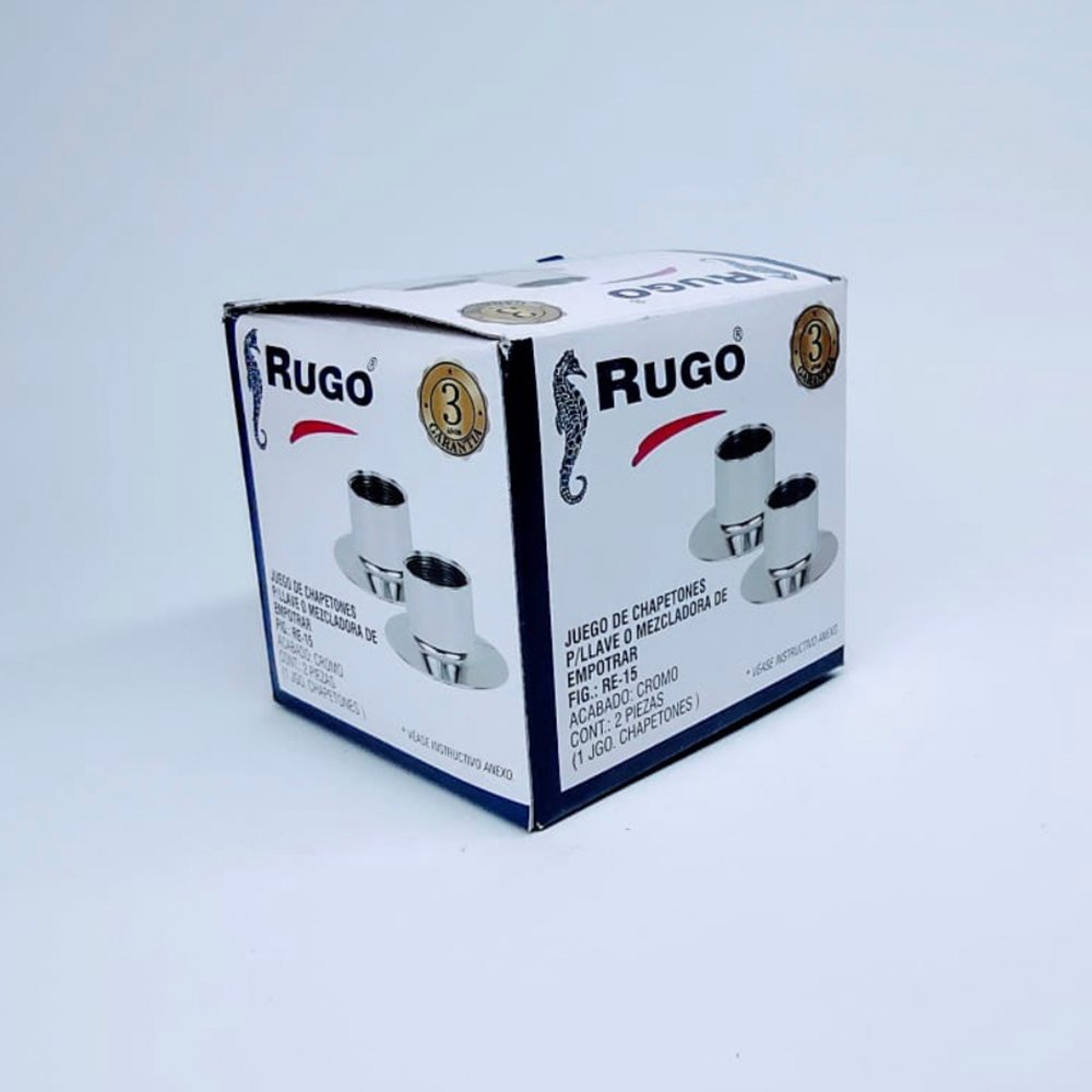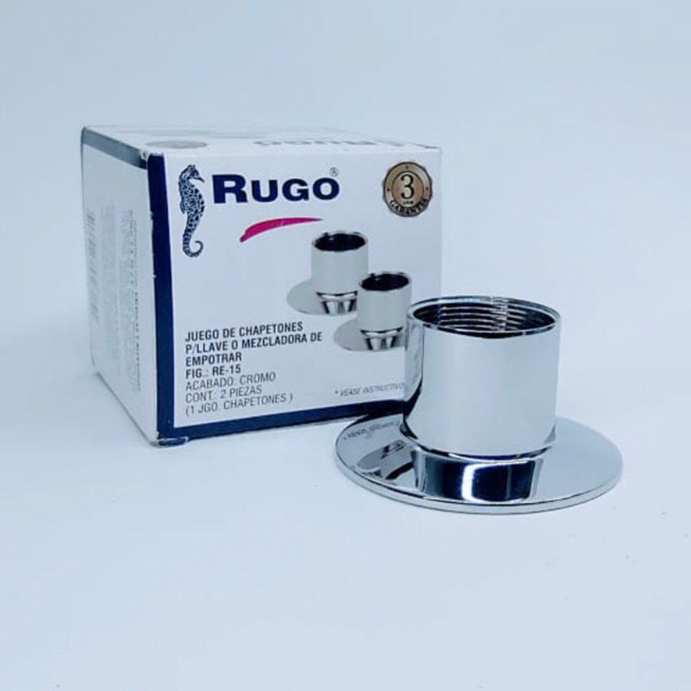 Chapetones para manerales de Regadera cromados modelo RE-15, marca Rugo.