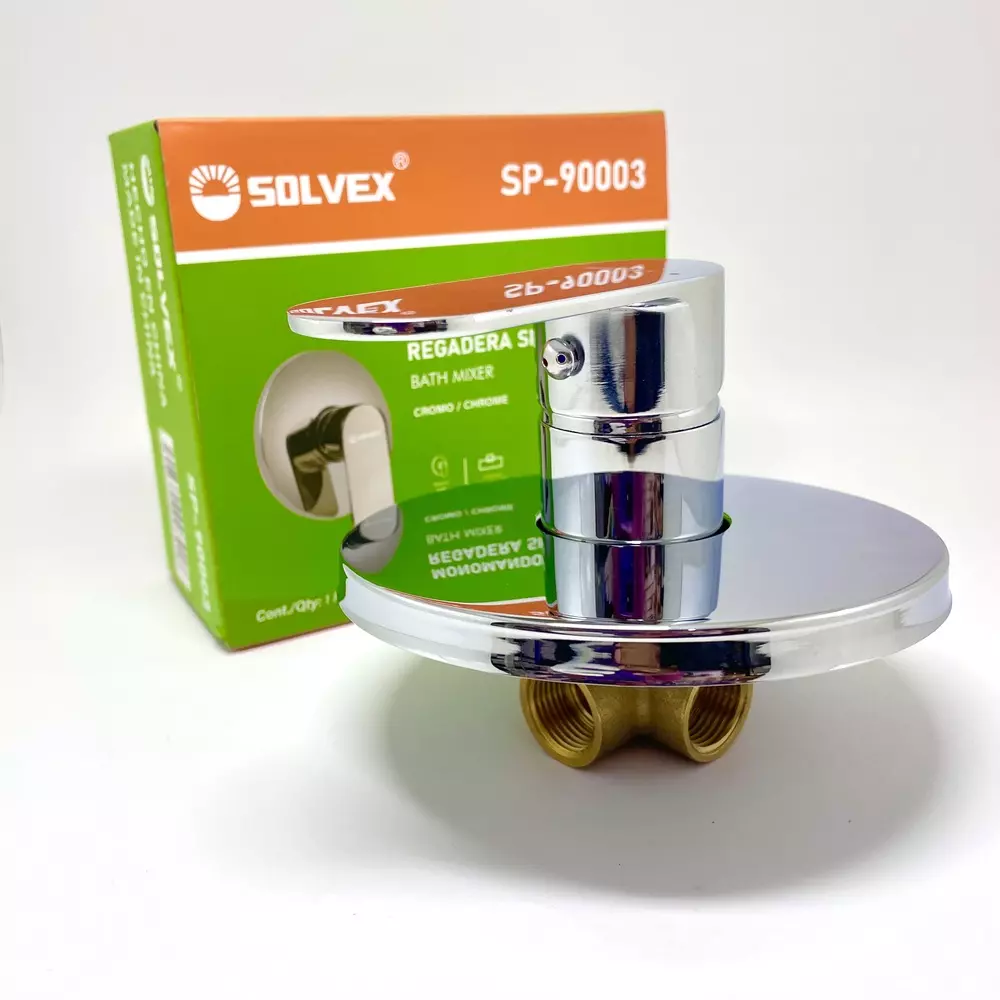 Monomando para regadera sin desviador para tina SP-90003 fabricado en latón con conexiones de 1/2" npt 13mm roscables cuerda interior, sistema ecológico ahorrador de agua con apertura suave cartucho de latón acabado cromo de la marca solvex, SKU (7518690003018) Modelo 3286 No. 1pz , Características del empaque ancho 15cm largo 16cm alto 8cm fabricado en cartón contenido por caja 3pz dimensiones ancho 17cm largo 20cm alto 27cm Garantía de 6 meses en defectos de fabricación.