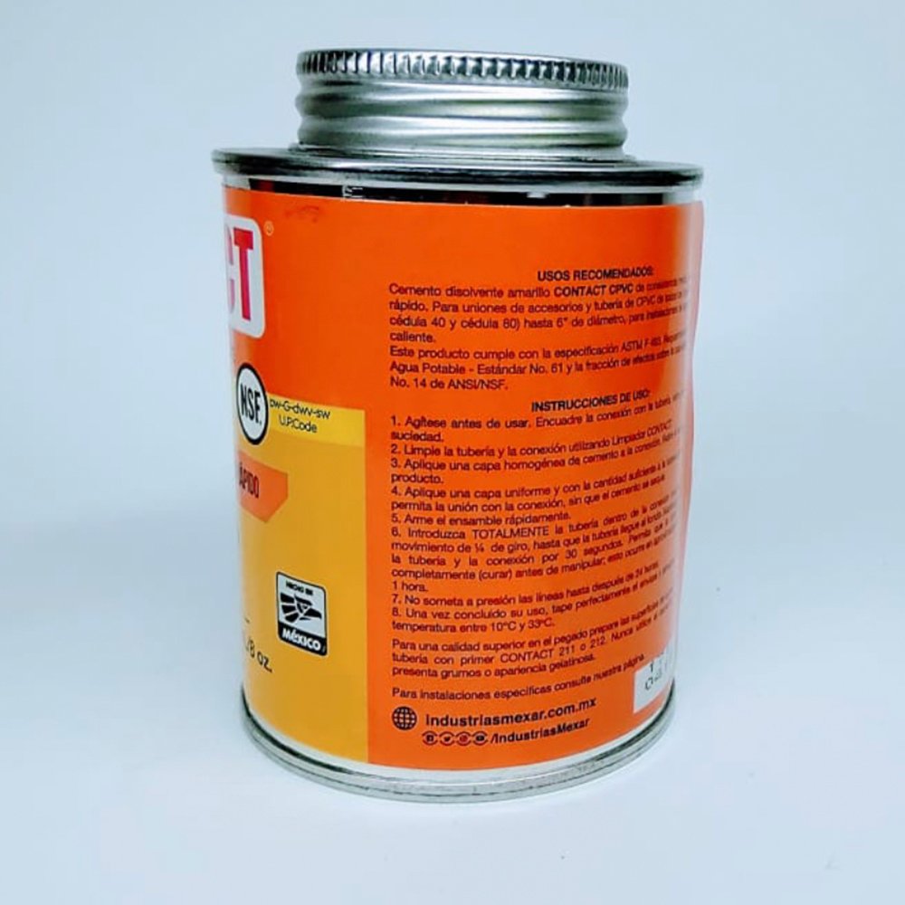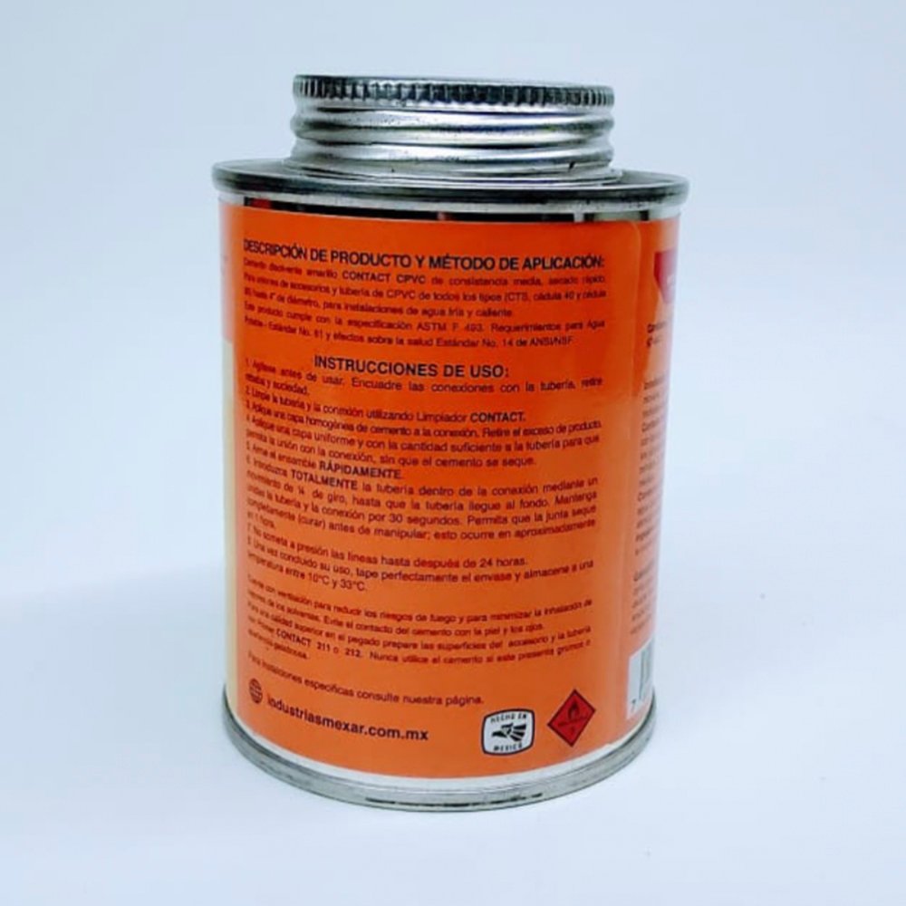 Pegamento para tubería CPVC presentación 240 ml marca contact.