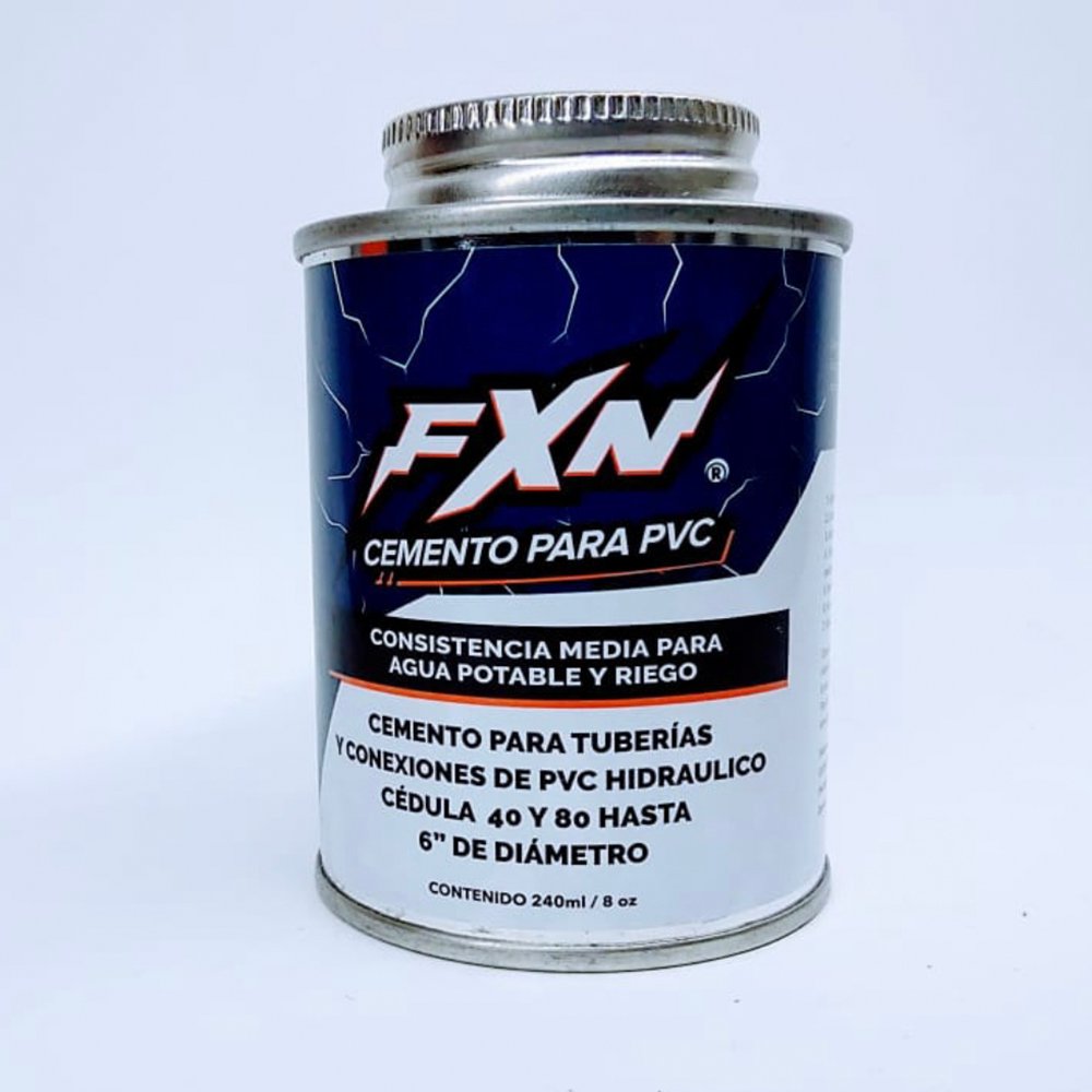 Pegamento para alta presión conexión y tubería pvc hidrahulico ced 40 presentación 240 ml marca FXN.