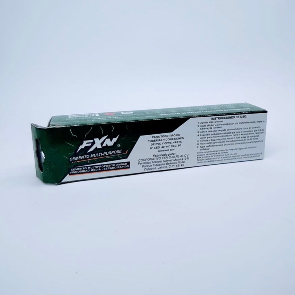 Pegamento en tubo para PVC, CPVC y hidráulico ced. 40 presentación 60 ml marca FXN.