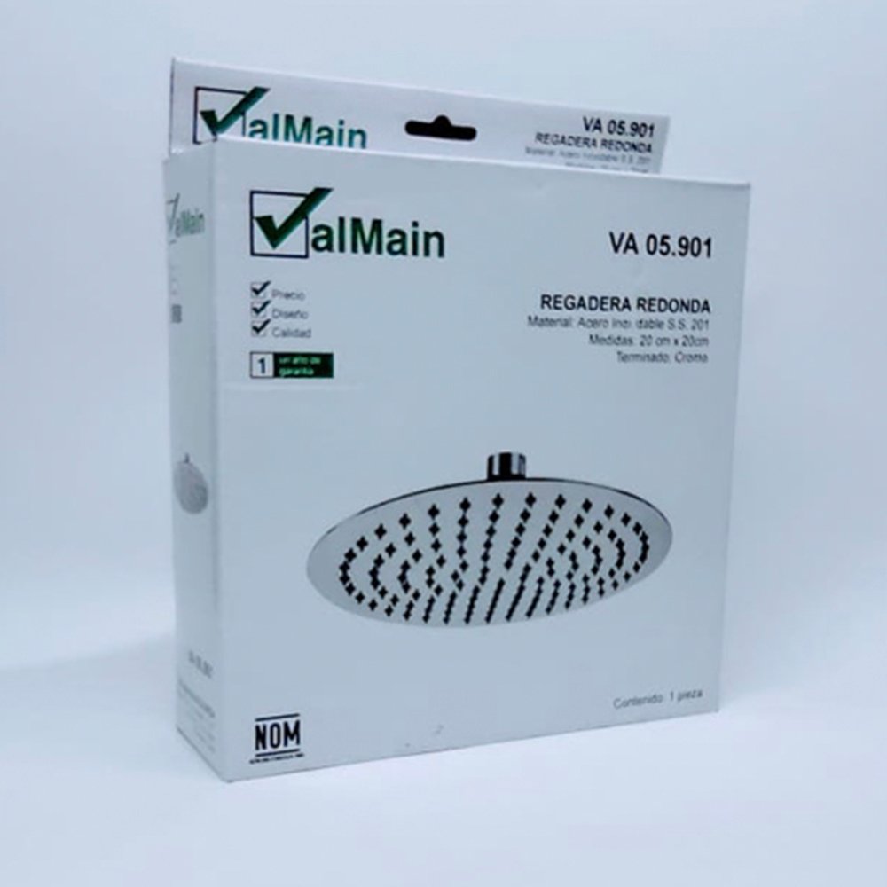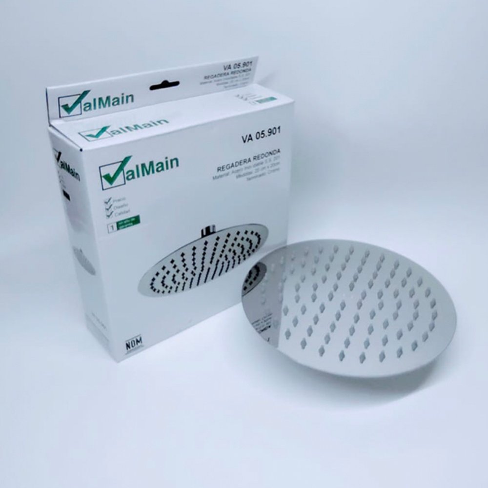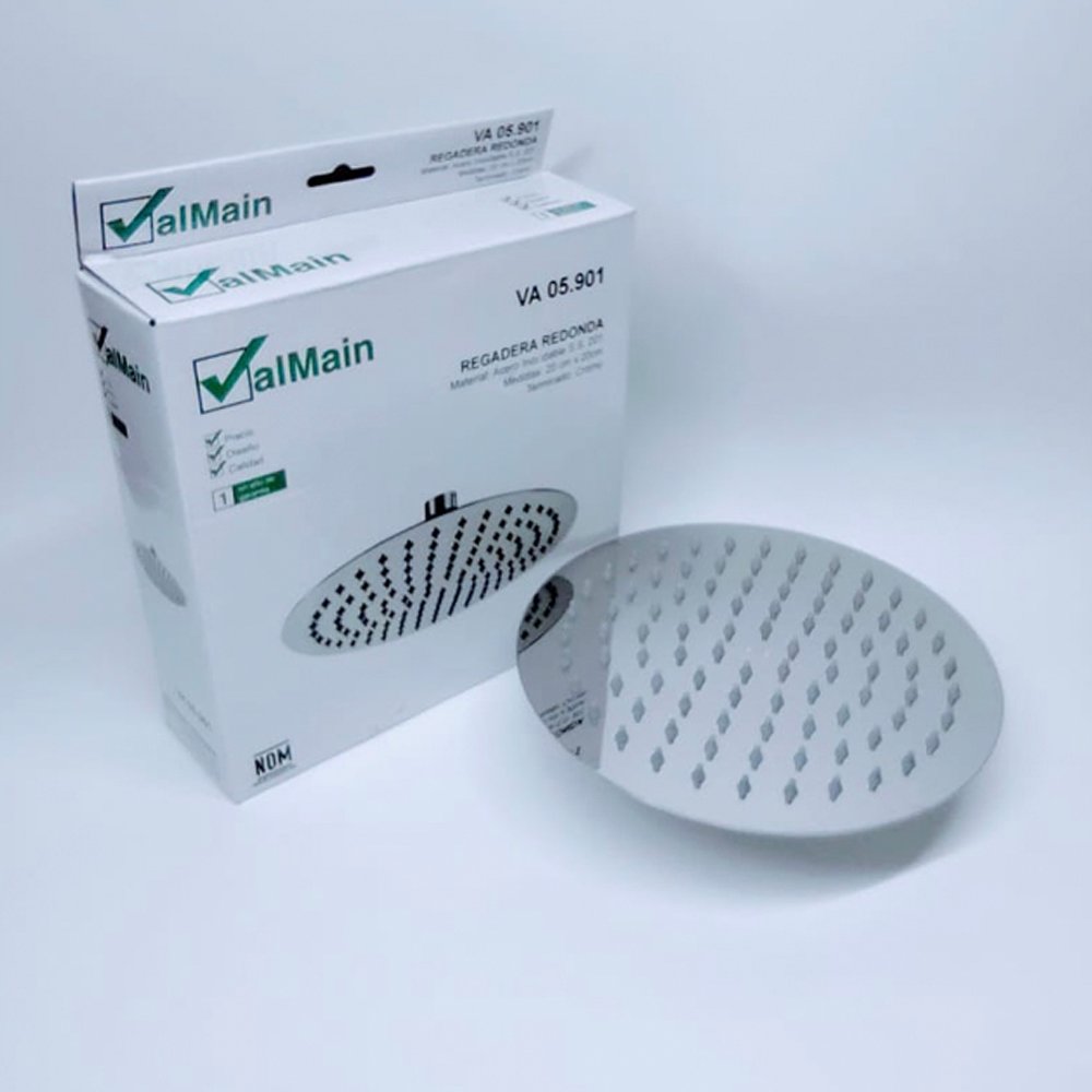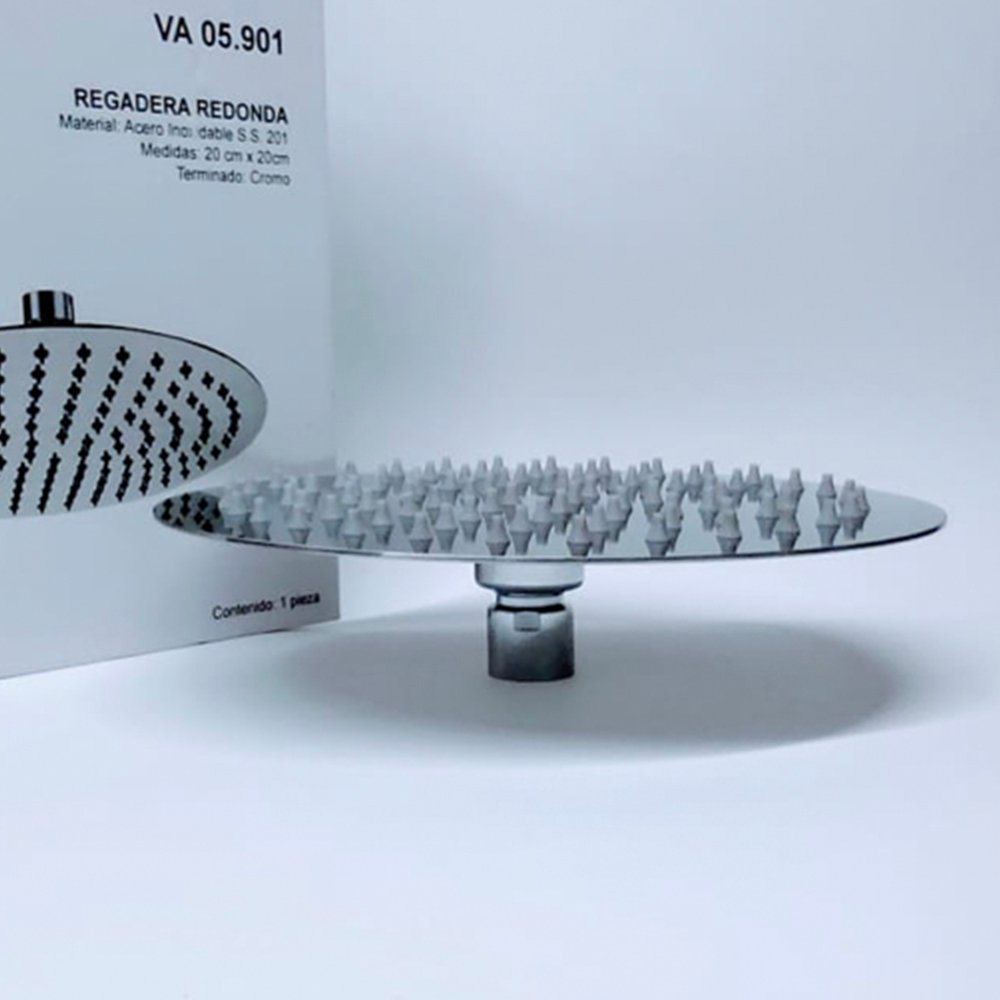 Regadera Redonda plana diámetro 20 cm acabado espejo modelo 05.901 marca Valmain.