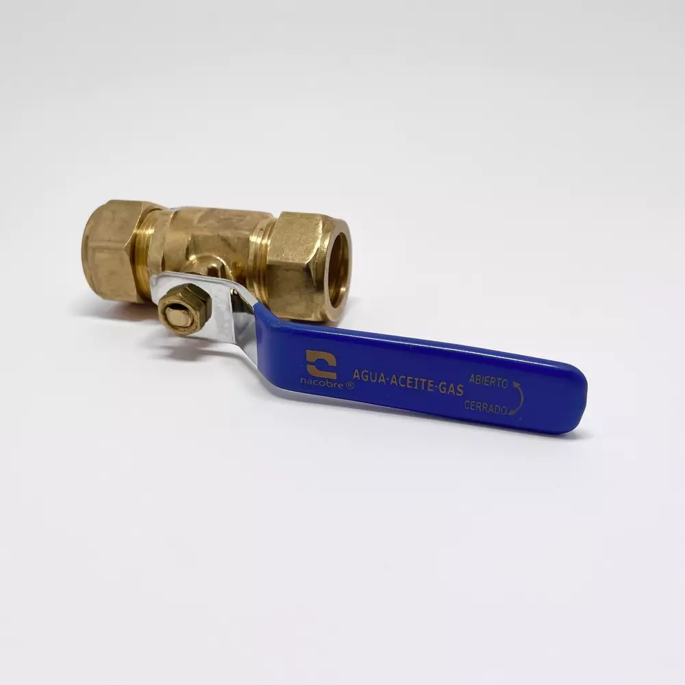 Válvula de 3/4 pulgadas 19mm VEC-19C fabricada en latón de 1/4 de vuelta sistema de esfera para tubería de cobre válvula con sistema de sellado compresión maneral de acero presión de trabajo 400psi/28kgf/cm2 temperatura de trabajo -15°C a 70°c en acabado semi brillante de la marca Nacobre SKU 75014250231 Modelo 1750 No. pz 1 Garantía de 1 año en defecto de fabricación.