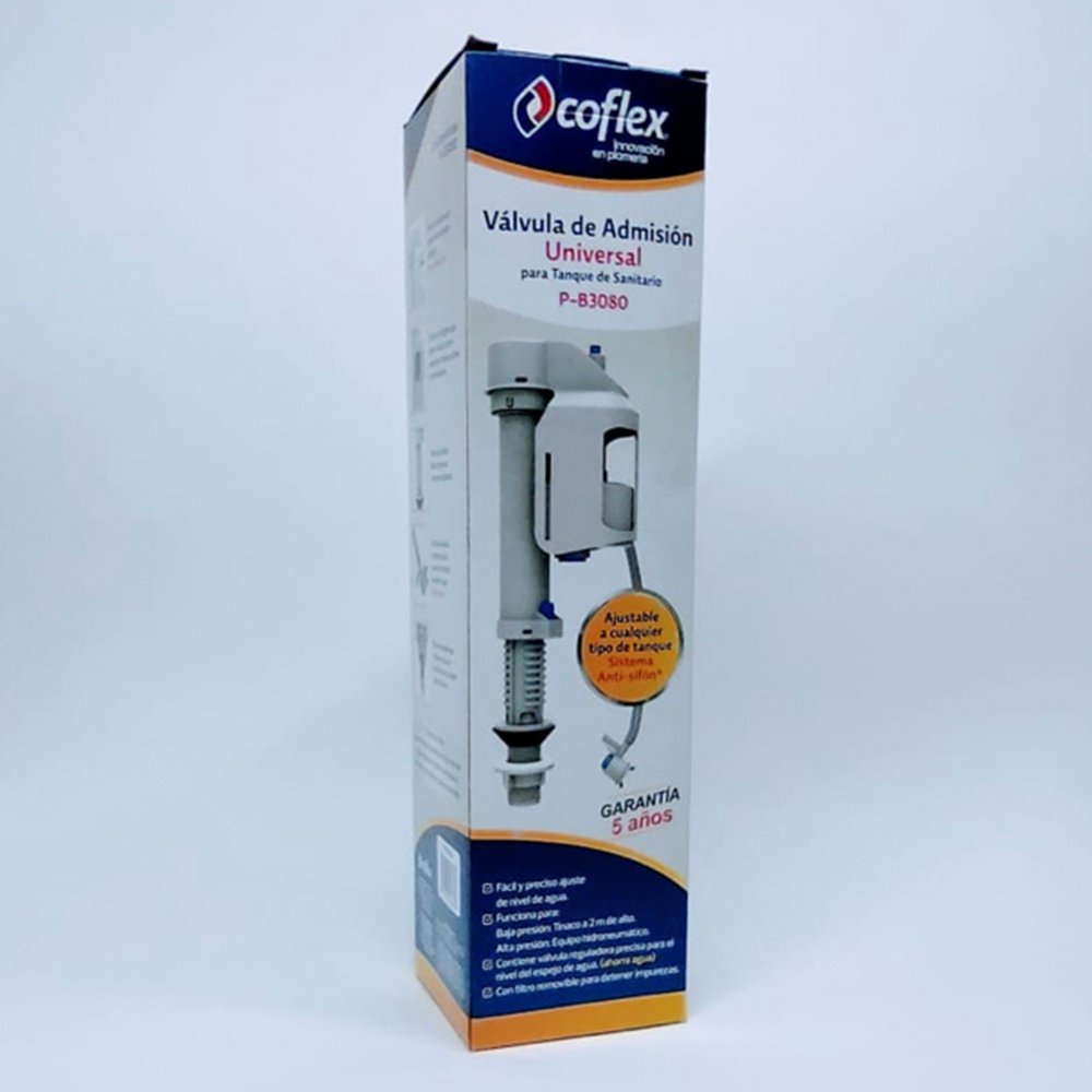Válvula universal de llenado altura ajustable trabaja con alta y baja presión modelo P-B3080 marca Coflex.